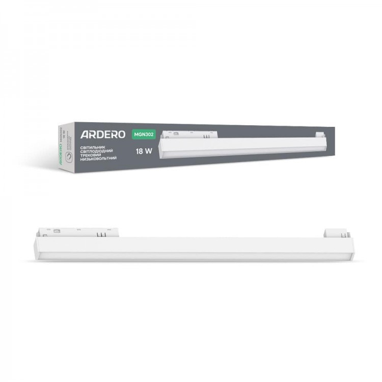 -10%Трековий магнітний світильник Ardero MGN302 18Вт 4000K бiлий лінійний 1440Lm LED 450х22х43 мм