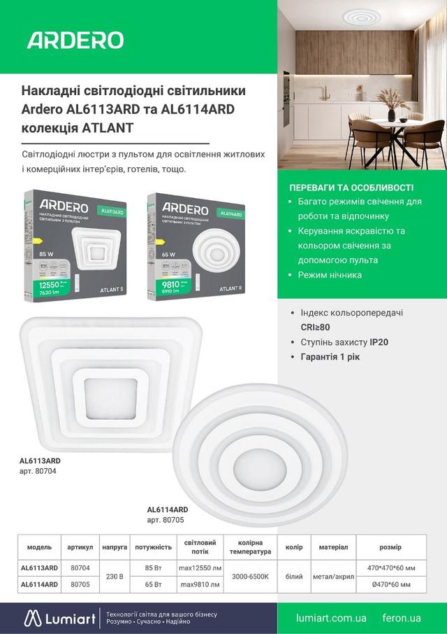 Переваги Ardero AL6114ARD ATLANT R 65Вт: