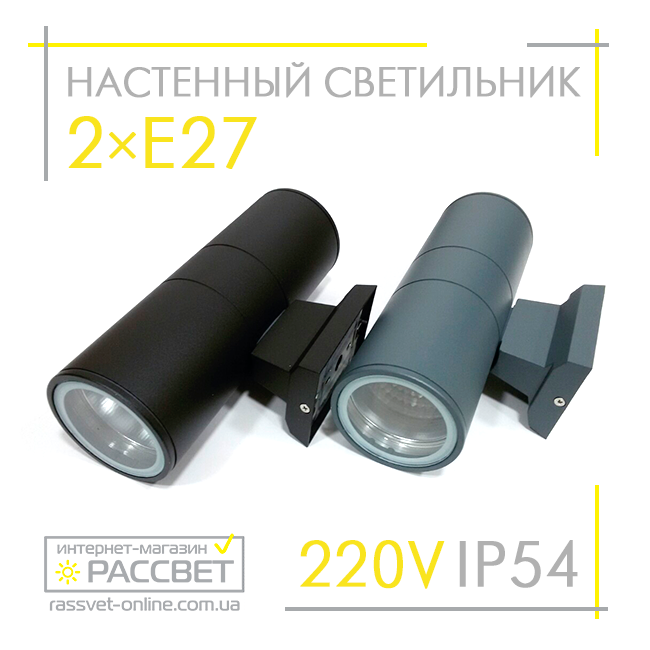 Настінний світильник бра Feron DH0702 чорний (або сірий) під 2 лампи з цоколем Е27 має захист IP54. Можна використовувати як лампи розжарювання (до 60Вт), так і світлодіодні лампи типу "кулька".